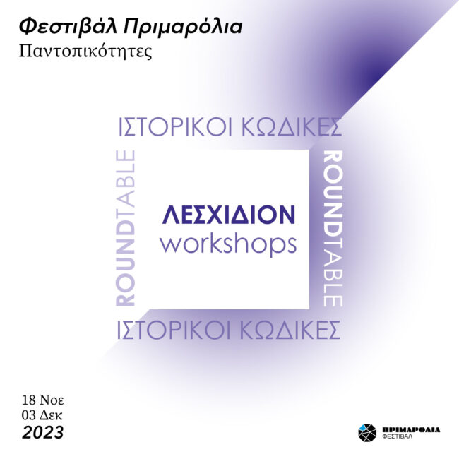 ΣΑΒΒΑΤΟ 18 ΝΟΕΜΒΡΙΟΥ Τοποθεσία: Βίλα Κόλλα, προαύλιος χώρος |18:30| ΕΝΑΡΞΗ ΦΕΣΤΙΒΑΛ ΠΡΙΜΑΡΟΛΙΑ 2023 ΠΑΝΤΟΠΙΚΟΤΗΤΕΣ/GLOCALITIES Καλωσόρισμα και χαιρετισμοί. Χρήστος Ι. Μπούρας, Πρύτανης Πανεπιστημίου Πατρών Σωτήρης Μπόλης, Πρόεδρος Πριμαρόλια ΑΜΚΕ Βασίλης Ψαρράς, Καλλιτεχνικός διευθυντής Φεστιβάλ Πριμαρόλια και Έκθεσης σύγχρονης τέχνης Νάνσυ Χαριτωνίδου, Επιμελήτρια έκθεσης σύγχρονης τέχνης Απόστολος Ραφαηλίδης, Αναπλ. Καθηγητής, Πρόεδρος Τμήματος Διοίκησης Τουρισμού, Πανεπιστήμιο Πατρών…