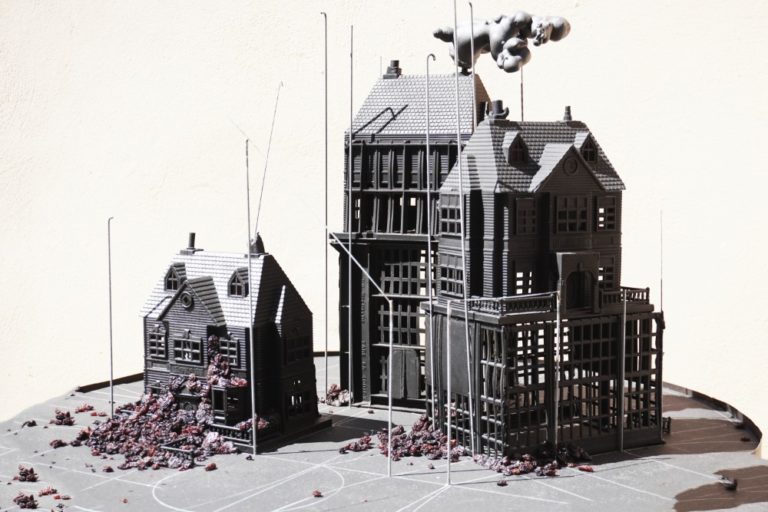 The exhibition – curated by Nansy Charitonidou – holds a site-specific characteristic as it develops within an emblematic, preservable and restored building, one of the oldest currant warehouses which carry the industrial history of the city and also its cintemporary culture. The building, owned by Kanellopoulos-Kritsotalakis, was built in 1900 as a currant warehouse, the office and house of a great currant trader, while in 1985 was a place of inspiration for Theo Angelopoulos for his movie “The Beekeeper” as Cine Pantheon.