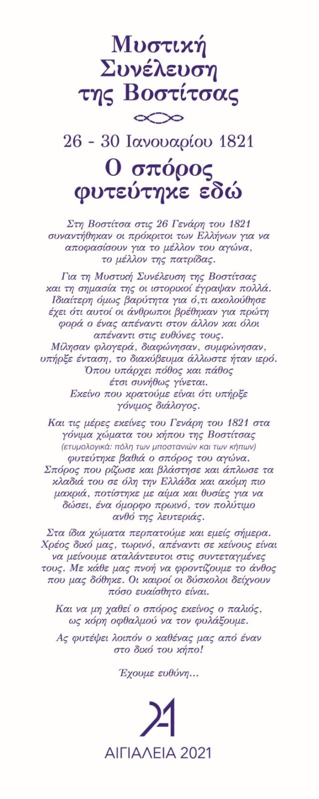 - Integration of emblematic events under the auspices of the Commission Greece 2021.