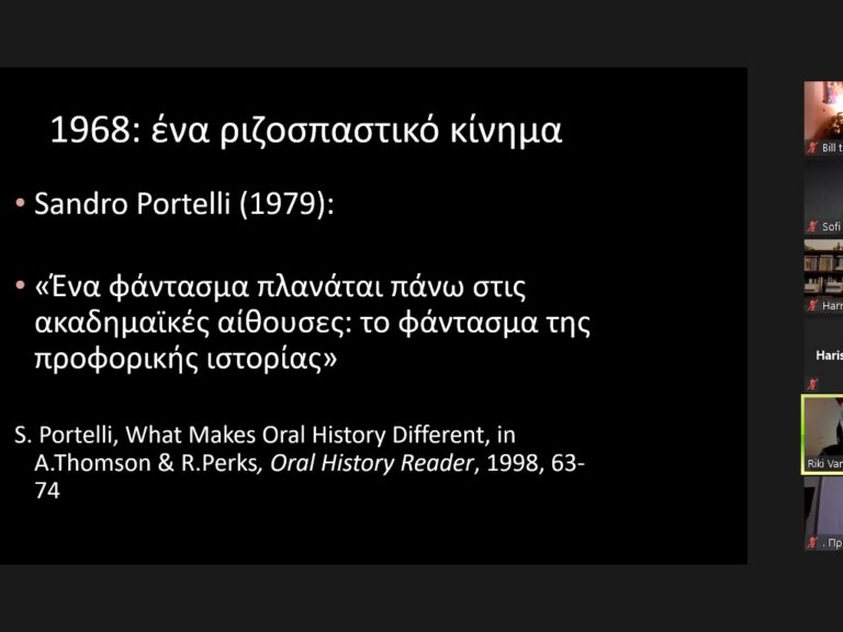 Η Προφορική Ιστορία είναι μια πολύπλευρη προσέγγιση του παρελθόντος με διεπιστημονικό και συνεργατικό τρόπο. Στο επίκεντρό αυτής της ερευνητικής πρακτικής βρίσκεται η συνέντευξη με τους πρωταγωνιστές του παρελθόντος. Πρόκειται για μια “ιστορία από τα κάτω” που συμβάλλει στον εκδημοκρατισμό και τον εξανθρωπισμό της Ιστορίας και διαμορφώνει μια ιστορική γνώση και κρίση αναγνωρίζοντας την πολυμορφία των ανθρώπινων εμπειριών. Η προφορική Ιστορία δεν καταγράφει απλώς τις βιωμένες εμπειρίες ανθρώπων για να γεφυρώσει κενά στη γραπτή Ιστορία, αλλά συμβάλλει επίσης σε μια πληρέστερη κατανόηση του ιστορικού γίγνεσθαι μέσα από τις ερμηνείες των ίδιων των αφηγητών, όπως επισημαίνει η Ρίκη Βαν Μπούσχοτεν, πρόεδρος της Ένωσης Προφορικής Ιστορίας, ομότιμη καθηγήτρια του Πανεπιστημίου Θεσσαλίας.